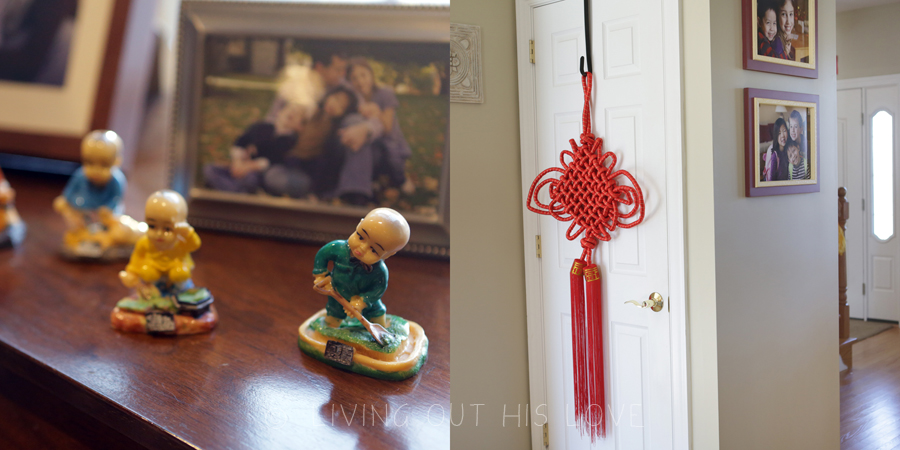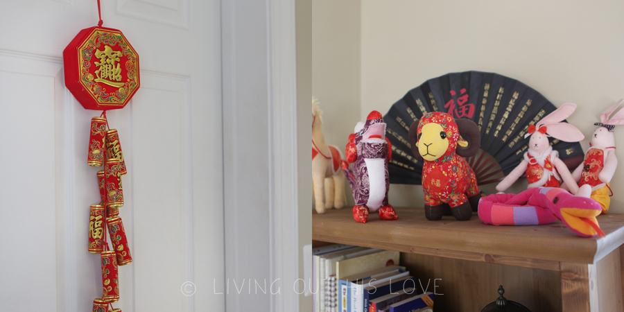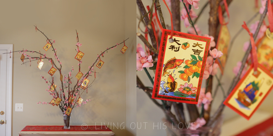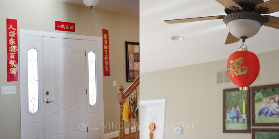 Our family has so much fun decorating for Lunar New Year. Once the Christmas decorations come down, the Spring Festival decorations go up. A little more is added each year to our growing collection, and I love seeing the house transform into a festive Chinese New Year celebration. We started out small but now have a really fun stash. Decorating this year was doubly as fun because we moved into our sweet country house about a month ago – so we’ve been finding new homes for all of our precious China treasures. We do things a little differently each year, but here is a glimpse of the decoration festivities in our home for 2016. You’ll find tips for the decor at the bottom of the post.