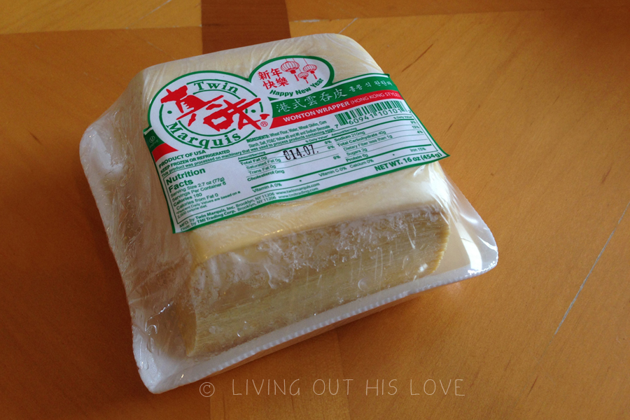 - 80 wonton wrappers (I use pre-made from the Asian market)