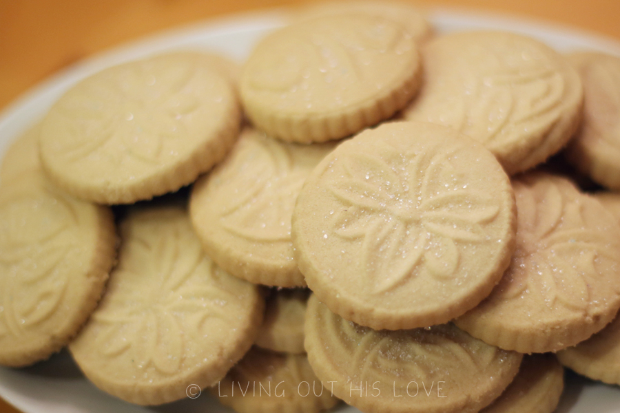 I made them with a basic shortbread cookie recipe that I have posted below. Aren’t they pretty?