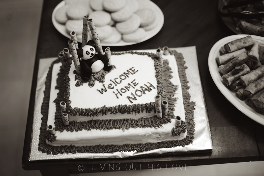 When I was asked to help plan a sprinkle shower for my sweet friend, I was happy for the chance to celebrate another special child coming home from China! I didn’t take many pictures at the event unfortunately, but we had a great time celebrating with my dear mama friend. I pulled out all of my Chinese New Year decorations and we went wild turning the house into a festive Chinese party, dragons and lanterns hanging from the ceiling and all. I also created a “good luck” tree table centerpiece with red envelopes and decorative Asian coins hung from a bouquet of sticks. We ate some delicious homemade Chinese food with chopsticks, including dumplings, crab meat wontons, fried rice, wonton soup, and buttery moon cookies. One of the other girls created and decorated a gorgeous panda-inspired cake. But if you aren’t into making cakes, decorating a plain white cake with a lot of colorful fruit is traditional and would work just as well!