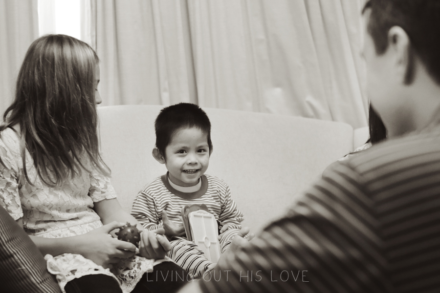 When we put him to bed, we laid him down in the middle of us. I got to watch his beautiful little eyes close and drift off to sleep, and then felt his little body next to me all night long. I admit I didn’t sleep much because I found myself staring at him through the night. After waiting for so long, he’s here. With our family. All of us together. I’m in awe!