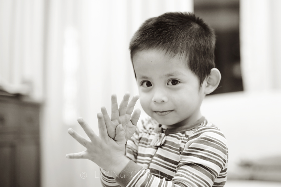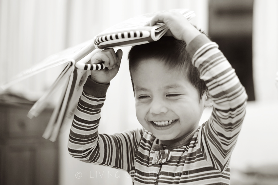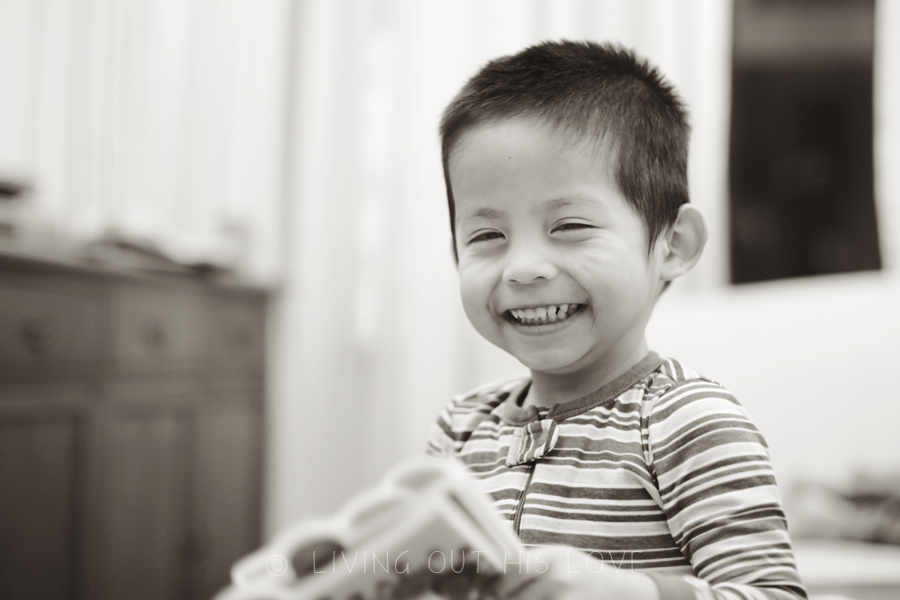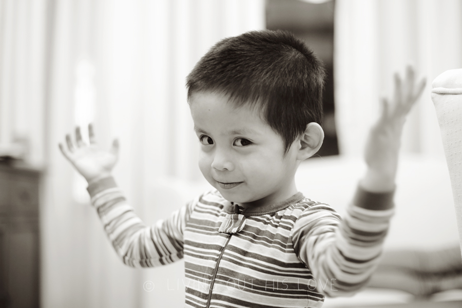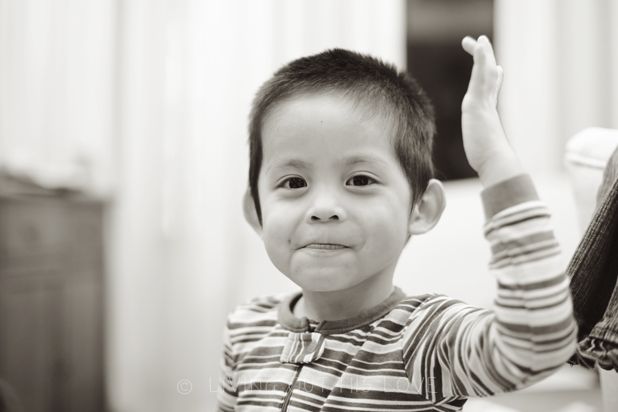 I don’t know if “goofnut” is a word (actually I’m sure it’s not), but DH coined it a few months back to describe one of the kid’s goofiness. Well if fits Dumpling perfectly also. I love watching these moments and am thankful I was able to capture some of it tonight before bedtime. He is such a little love and I so enjoy seeing him come alive!