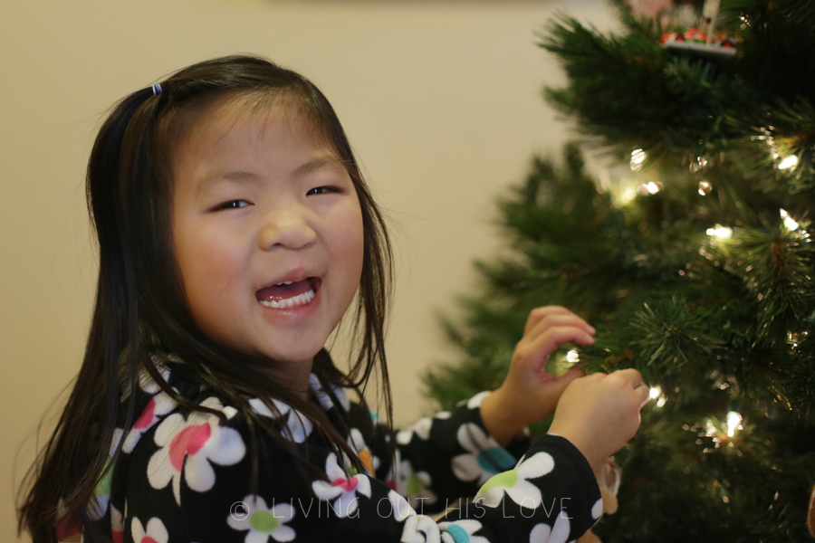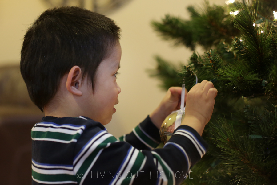 We typically pull up the tree and decorate it on the day after Thanksgiving, but we all agreed to wait for Dumpling to come home this year. I’m so glad we did. Although it was a bit more chaotic, it was priceless to see all four children hanging ornaments together. Absolutely priceless. I’m not sure when the novelty of having him home will wear off, but there are so many times I look at him and want to shed tears of thanksgiving and praise. Especially when I watch all four children together … gosh it’s just too much sometimes. His joy. His delight in every new experience. The way he seamlessly fits in with the others. The way the other children dote all over him. It’s all so very good.