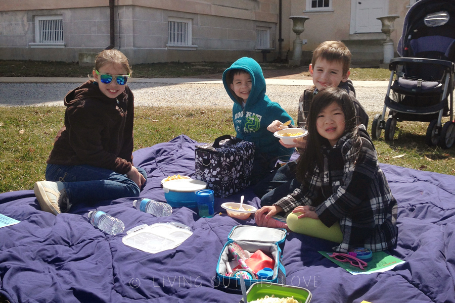 I told the kids on Thursday morning that if they finished all of the homeschool work before lunch, we’d go somewhere special for a picnic. They did. So we did. And it was glorious. The weather was amazing, albeit a little windy. The sun was so warm though, and we were comfortable enough to take off our jackets. After lunch they ran, explored, ran, and explored more. They were in heaven. And I loved watching them freely go wherever they wanted. Ok actually I told them they could go wherever they wanted within my eyesight. Gotta play it safe. But I could see pretty far with the open spaces, and they felt free. We even got the opportunity to take a quick tour of the mansion on the property. It dates back to 1790 and wow, it was spectacular.