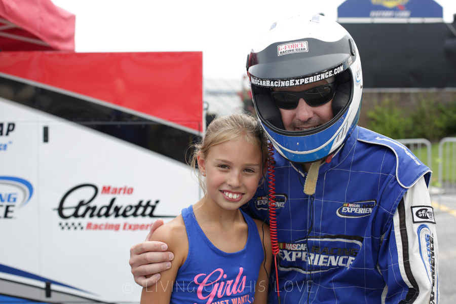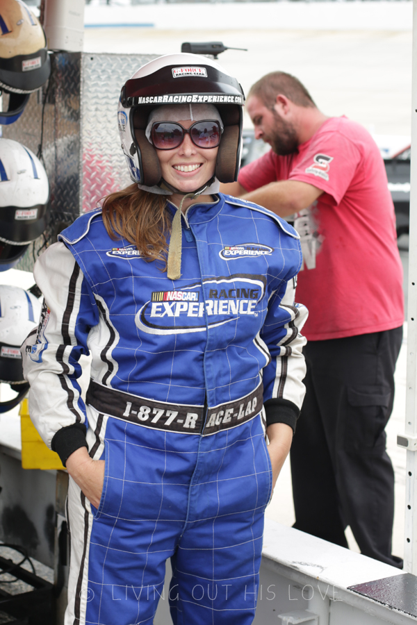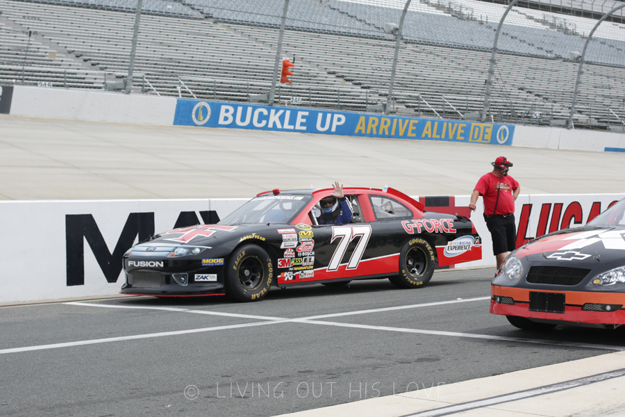 We spent Saturday afternoon at the race track so my husband could use the anniversary gift I got for him a little while back. Eight minutes driving a race car on a nascar race track? Yes, please. It was a family affair, and we all watched excitedly as he drove away and lapped around the track. If you are a nascar fan or simply like cars, this is such a cool experience to have! They also have a ride along for people who are too chicken … er, I mean too reserved … to drive. Hubby surprised me by purchasing a ticket for me! So I got to ride around the track at the end of our visit going 140MPH. Wow. So, so fun.