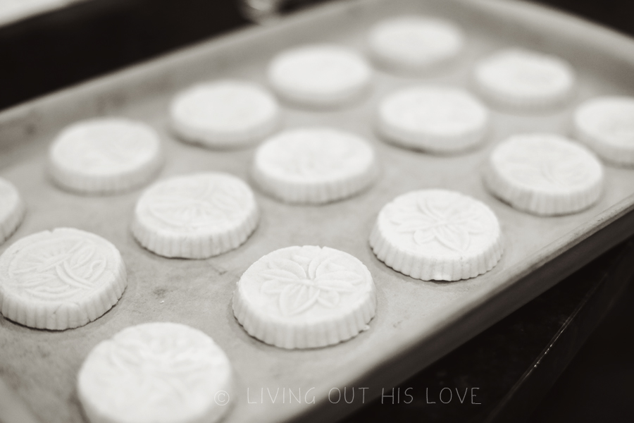 I know it’s traditional to make Moon Cakes for the Mid-Autumn Moon Festival, but we like Moon Cookies better. And I’m positive they’re quite a bit easier to create as well. So in preparation for the holiday yesterday, I baked our moon cookies on Saturday with the help of my littlest two. It was such a nice afternoon! If you’d like to bake some beautiful Moon Cookies for your family next Moon Festival or anytime really (who can say no to delicious shortbread cookies?), head on over to THIS blog post for instructions and a link to buy the cookie molds.