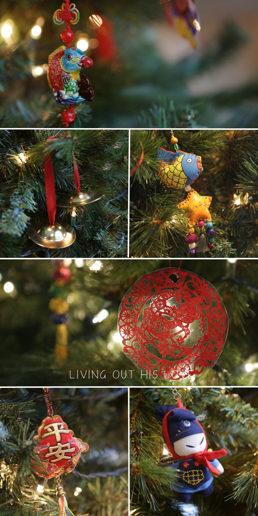 Our tree ornaments have multiplied over the years, but they started out very simply with some strung red envelopes, paper cuttings that I laminated and then hole punched, Chinese coins, fun dragon toothpicks (Party City and Oriental Trading) stretched around the tree, several treasures from China, and a few crafts from the children. I’ve since been to China twice and had the opportunity to purchase many small ornaments to fill the tree. They are very affordable and plentiful in-country, so I tried to find different treasures in each store for a nice variety. I had so much fun hunting for the perfect additions, and the children enjoyed helping too! They can look at the ornaments now and remember the stores and their shopping experiences in China.