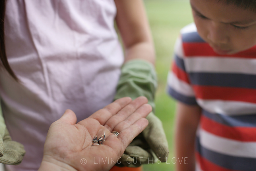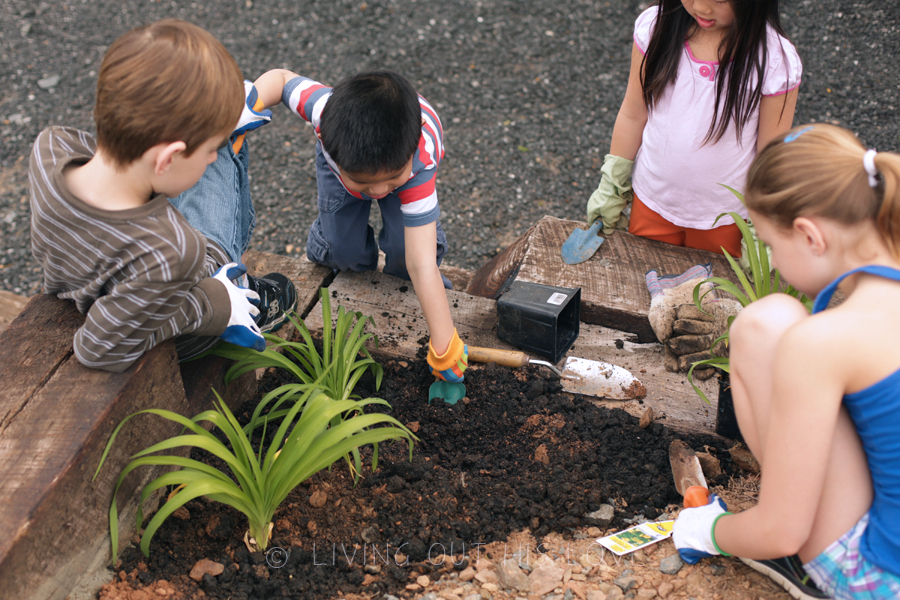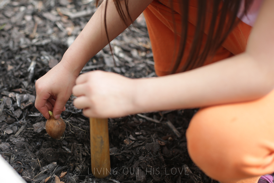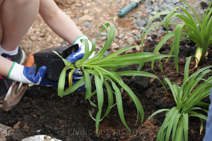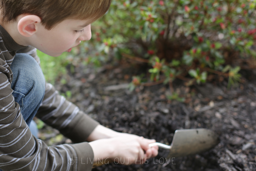 Having the extra outdoor space on our property means more creative inspiration for gardening! And it was a perfect day to spend planting new flower seeds! I’ve wanted “lovely purple irises” since my college sorority days, so today we planted 50 bulbs! I’m not sure if they’ll bloom this season, but hopefully they will grace us with their presence next year. We also planted a bunch of lilies – another flower I’ve always enjoyed seeing in gardens. The children also picked out their own packets of flower seeds to grow while at the store earlier this week, and then they chose where to plant them. It’s going to be so rewarding to watch everything sprout up and blossom through the summer. And on top of that, this is a super fun way to help the kids learn about caring for seeds and plants! There’s still a lot of work still to be done, but I am thoroughly enjoying the gardening lifestyle. There’s something so gratifying about playing in the dirt!