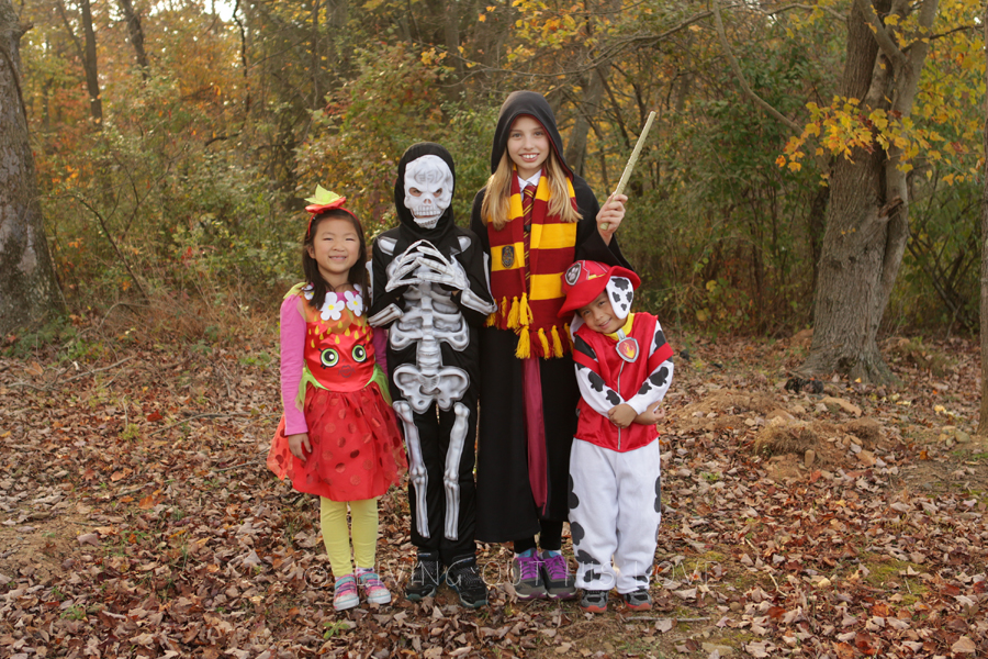 Happy Halloween from Paw Patrol’s Marshall, Hermione Granger, a skeleton, and a strawberry shopkin! The kids had a blast this year and we have the candy to prove it!