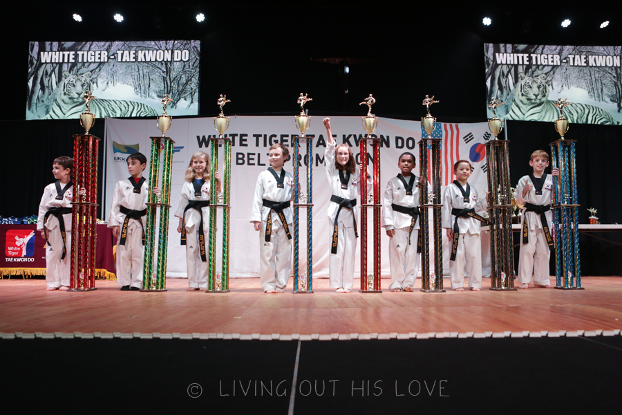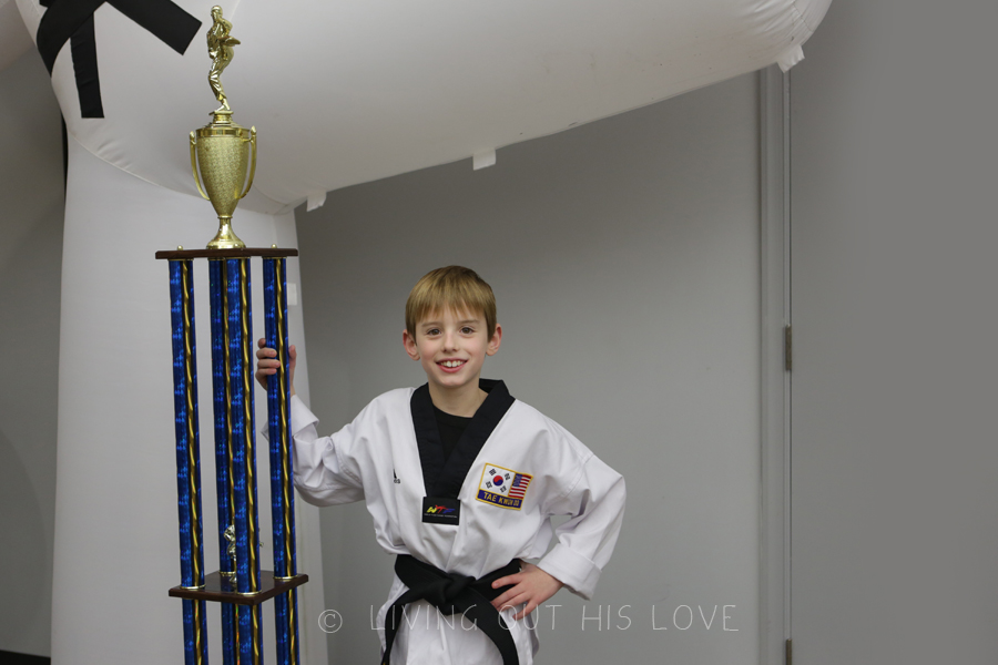 Mr. Lovebug achieved black belt back in August, but he finally got to lay eyes on his new trophy and certificate last Friday. It takes about 6 months for everything to be official with Korea. But now that the deal is done, he is an internationally recognized black belt and his room is sporting this 6-foot tall trophy. WHAT an accomplishment. Well done, my son!