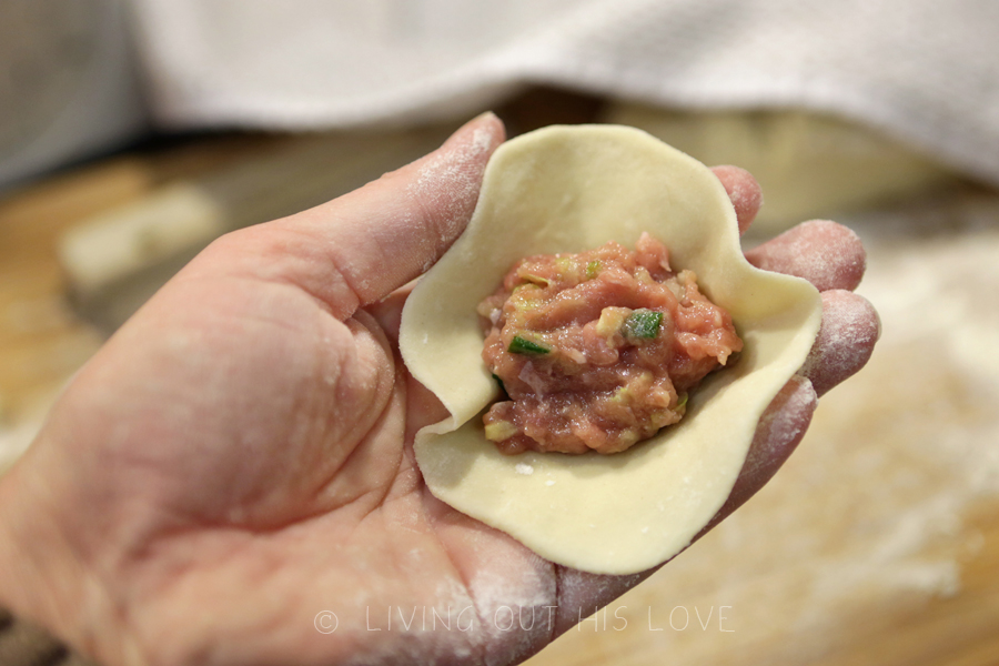Repeat steps 2-6 over again until all of the dumplings are made. Remember, it goes much faster if you work as a team!