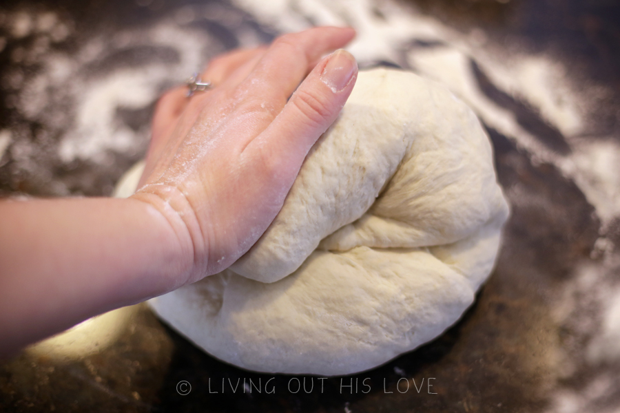 - Then add enough water to make a sticky bread dough (the dough should be just moist enough that you can knead it, but not too dry that it doesn't stick to your hands at all). I always start with my KitchenAid to get the dough mixed, though this isn't necessary.