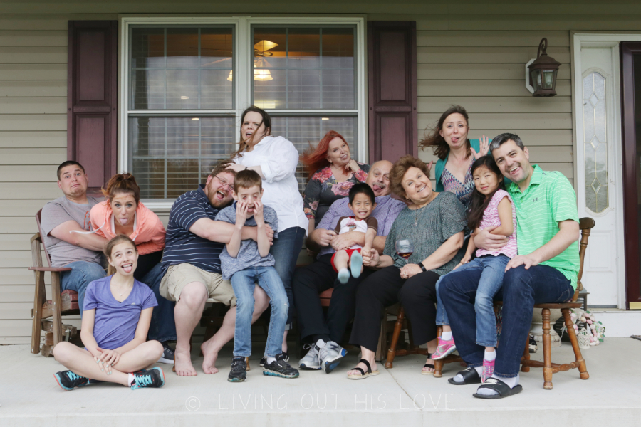 We had the family over for a Mother’s Day celebration and it was such a nice evening. Lots of chatting and eating, four-wheel riding and front porch sitting. All of which led to a few front porch selfies as we fought against the wind. We’re a funny bunch.