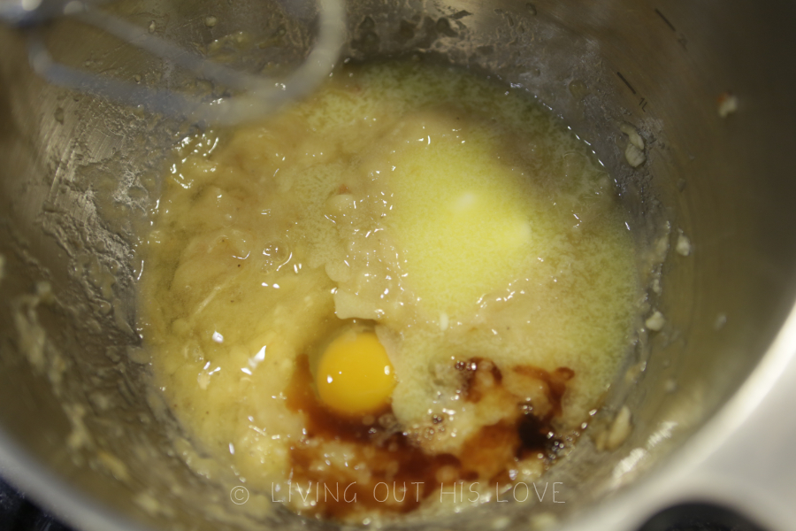 - Add all of the wet ingredients to the bananas, and mix well.