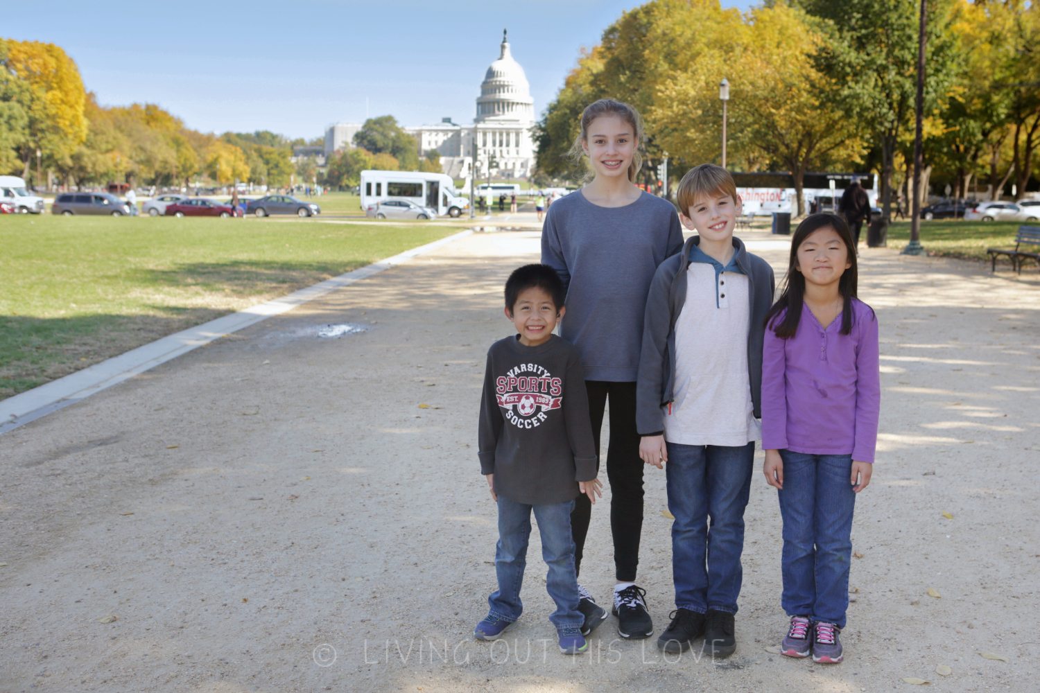 We were able to see most of the exhibits, but our favorite experience was the planetarium. I personally have always loved it as well, but the children especially commented about how interesting the show was. I so enjoyed being able to share that with them. After exploring the museum, we ate a picnic lunch out on the mall with some of our homeschool friends. The weather was simply spectacular and the afternoon was just perfect. We couldn’t have asked for a better day!