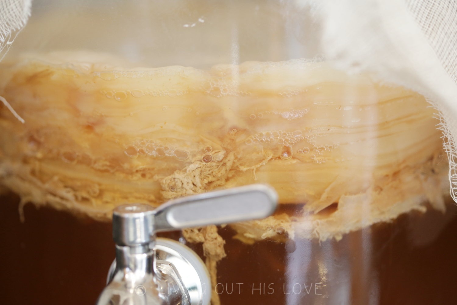 - For a 2 gallon dispenser, save 12 ounces of SCOBY and 2 cups of strong starter liquid. Set aside.