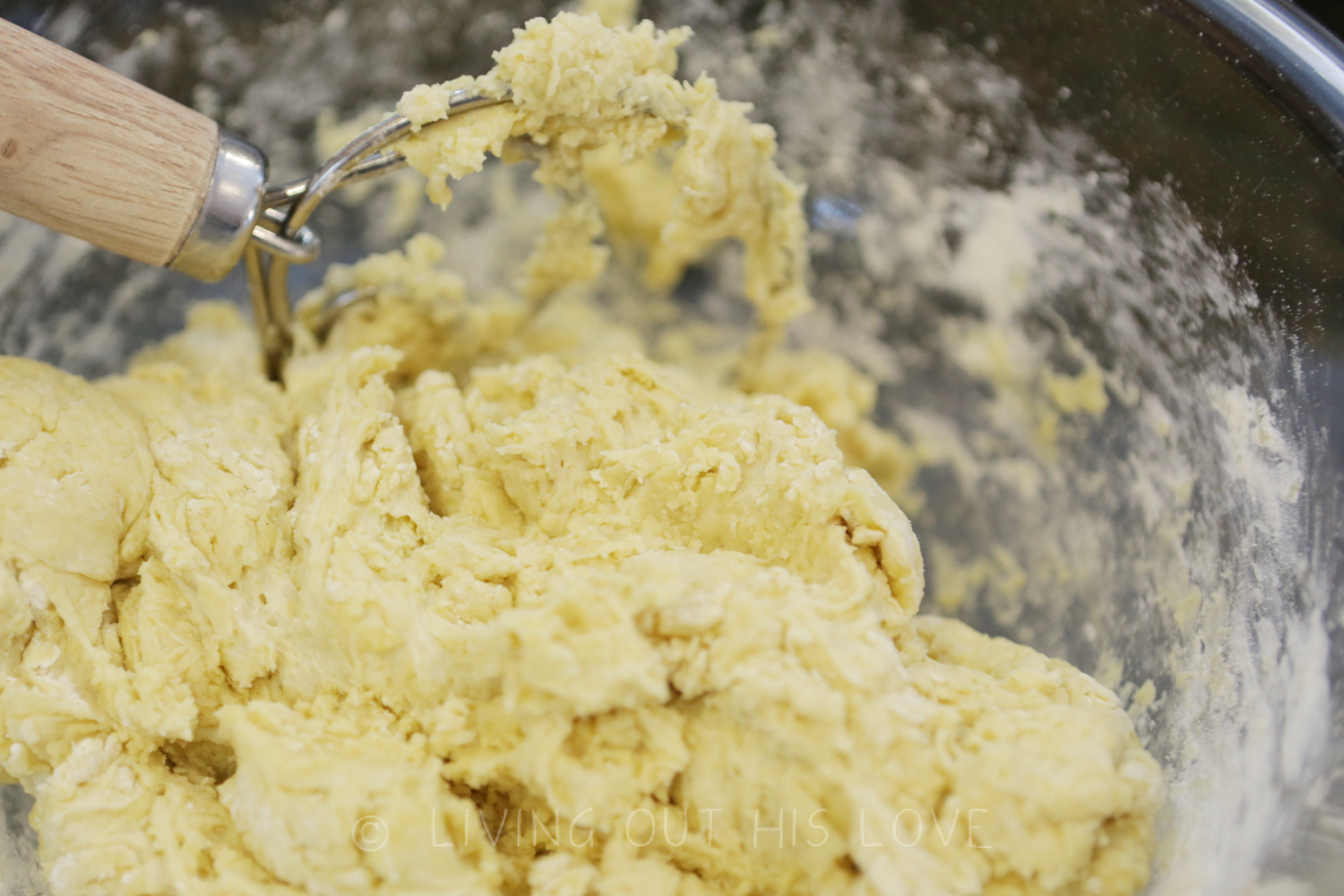 - Mix with a dough whisk until a rough dough forms. The dough will be sticky.