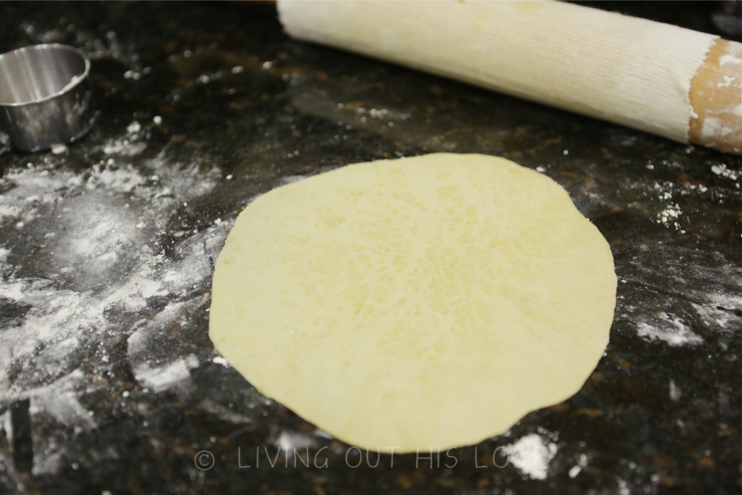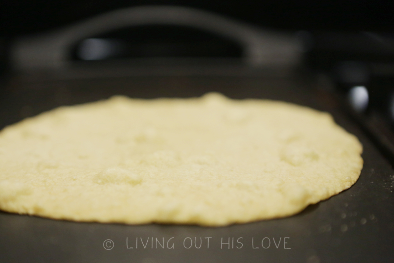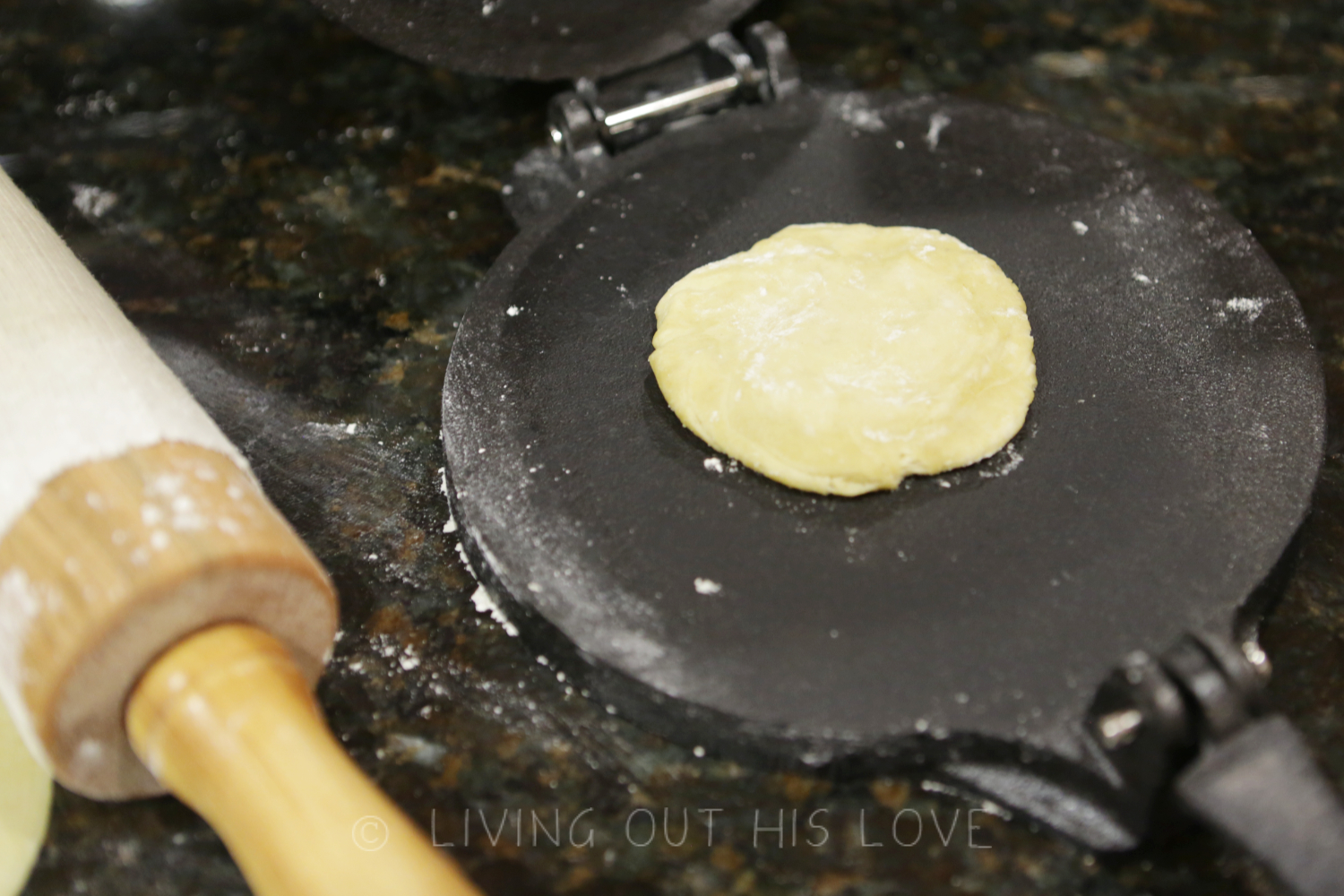 - Use a cast iron tortilla maker to flatten the dough pieces, or roll out with a rolling pin on a floured surface. Roll as thin as possible while still being workable. I find that the tortilla maker doesn't get them quite as flat as I prefer, so I start with that, and then finish them up with my rolling pin on a liberally-floured counter.