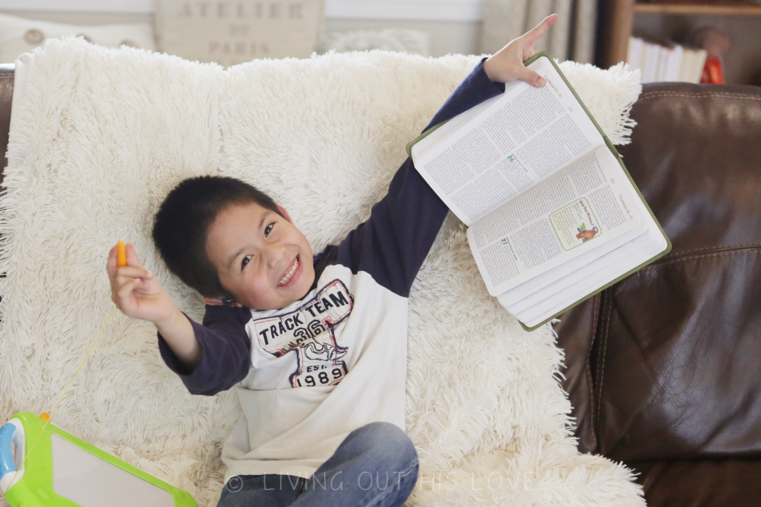 I turned around a short while later to find her in the family room with her Bible. She had looked up every single scripture reference in the eggs. On her own. Her interest then had a domino effect and led Dumpling to look through his Bible, too. Oh, these kids!