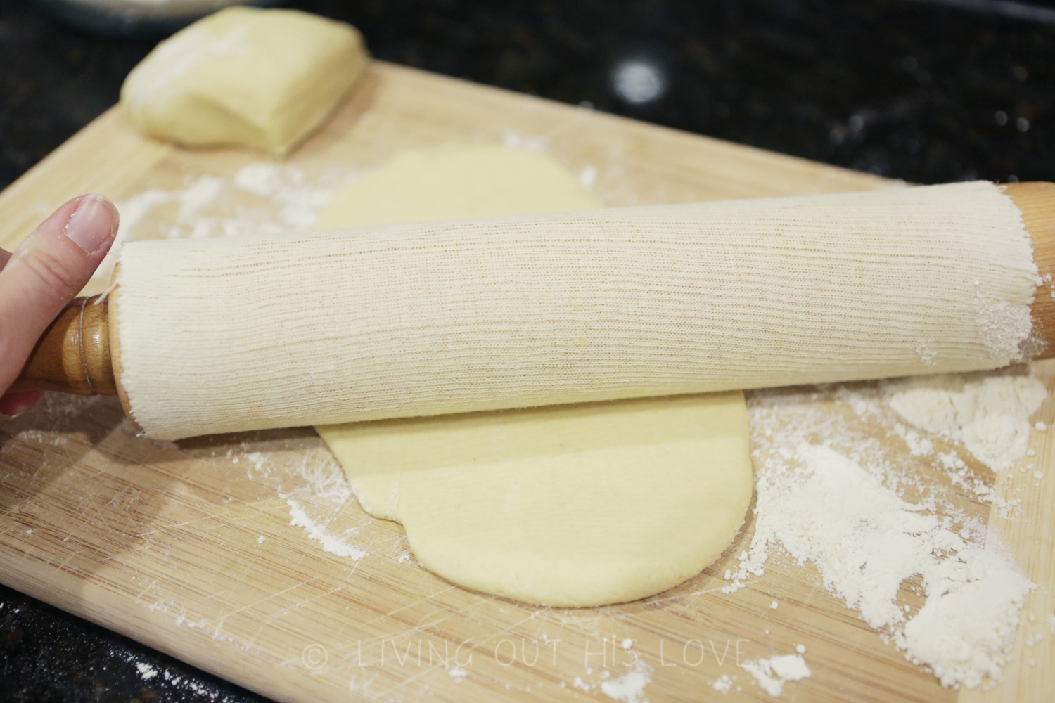 - Next, turn the dough out onto a well-floured work surface and knead for a few minutes, adding flour as needed so the dough doesn't stick to your hands or work surface.