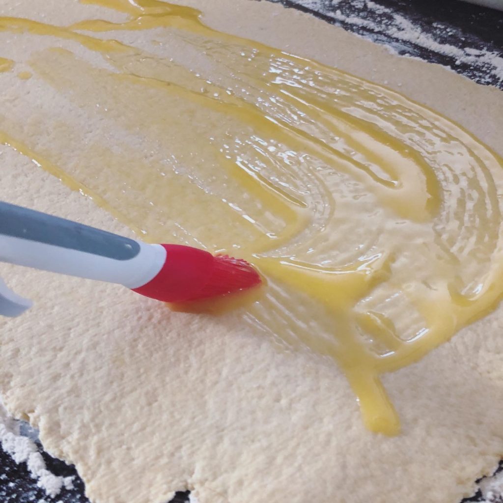 - Using a pastry brush, brush the 4 tablespoons of melted butter onto the dough.