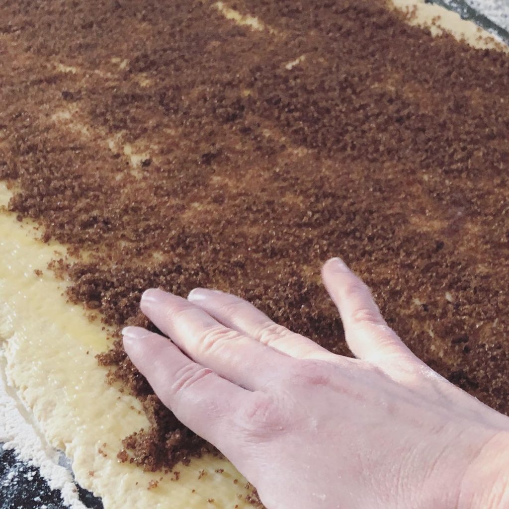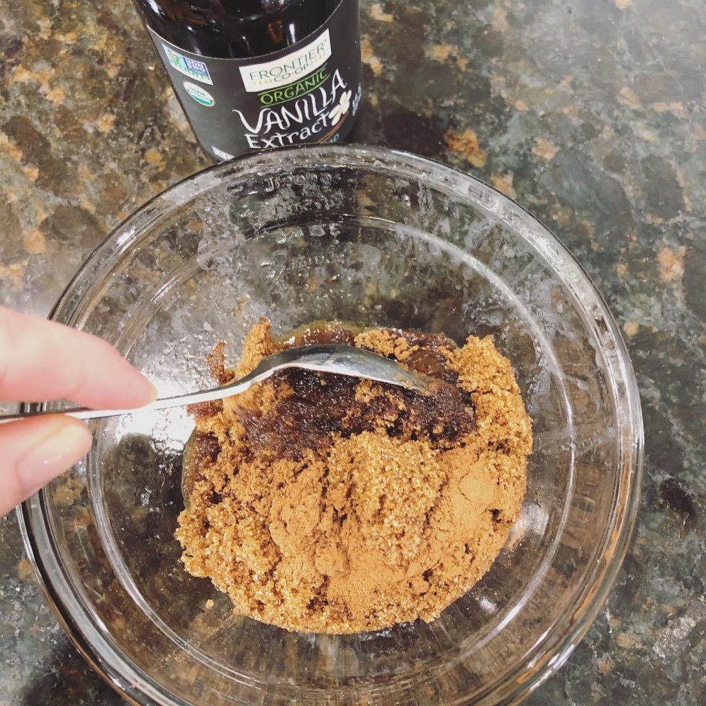 - Mix the filling in a small glass bowl by combining the brown sugar, cinnamon, and vanilla extract with a spoon. Set aside.