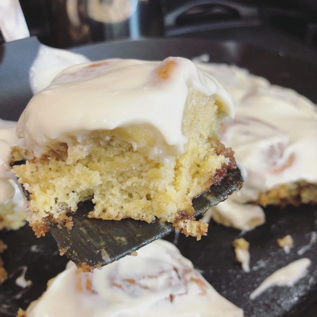 We made these this morning and they were wonderful! I poured 1/2 cup of heavy whipping cream into the pan before baking and we didn’t feel like they were crumbly at all. I learned that from another sourdough baker. It always makes cinnamon rolls better!