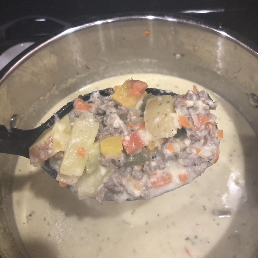 If you won’t be home in time to get this soup prepared, it could very easily convert to a slow cooker meal. I would brown the meat, and then put all the ingredients (minus dairy) into the crockpot on low, until the potatoes are cooked through.