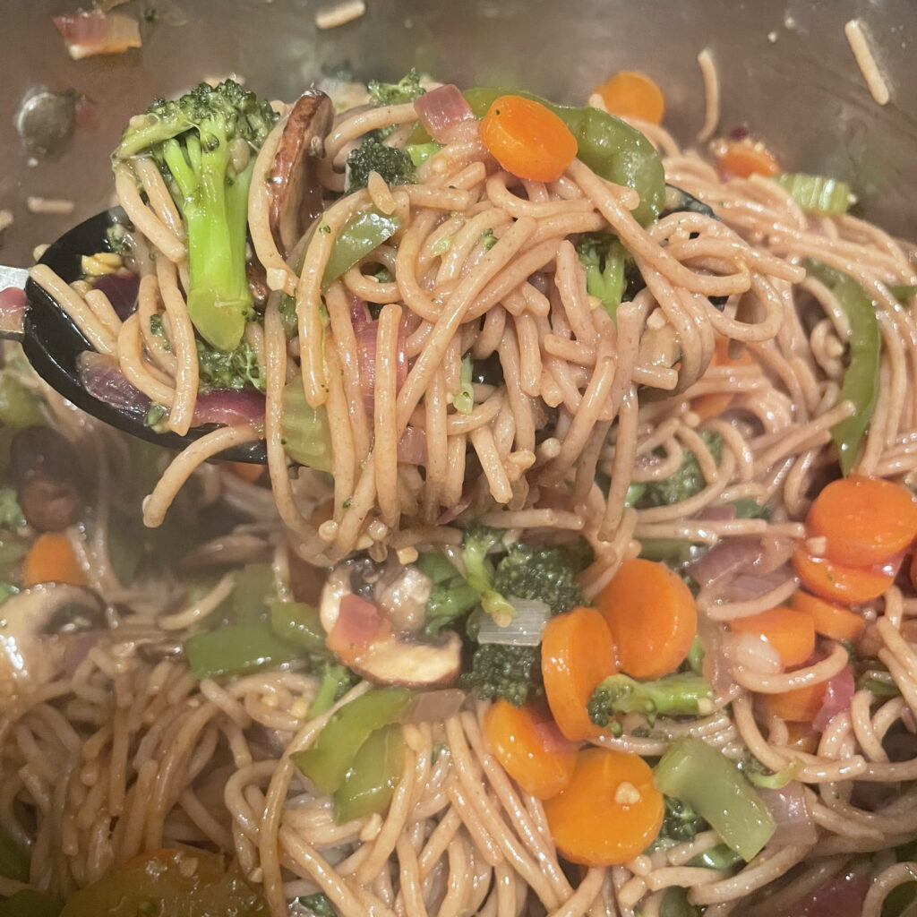 The original noodle recipe calls for sautéing the vegetables. I have an Instant Pot though, so I cheat and use it to steam the vegetables with an IP basket. Steaming veggies is one of my favorite ways to use the Instant Pot because the result is just so good – it’s worth the extra pot to clean. I have included the sautéing instructions as a backup, but I really recommend the Instant Pot if you have one!