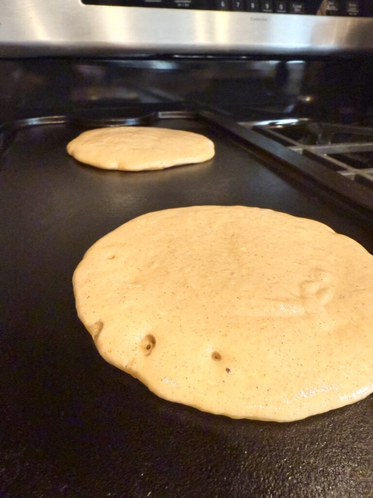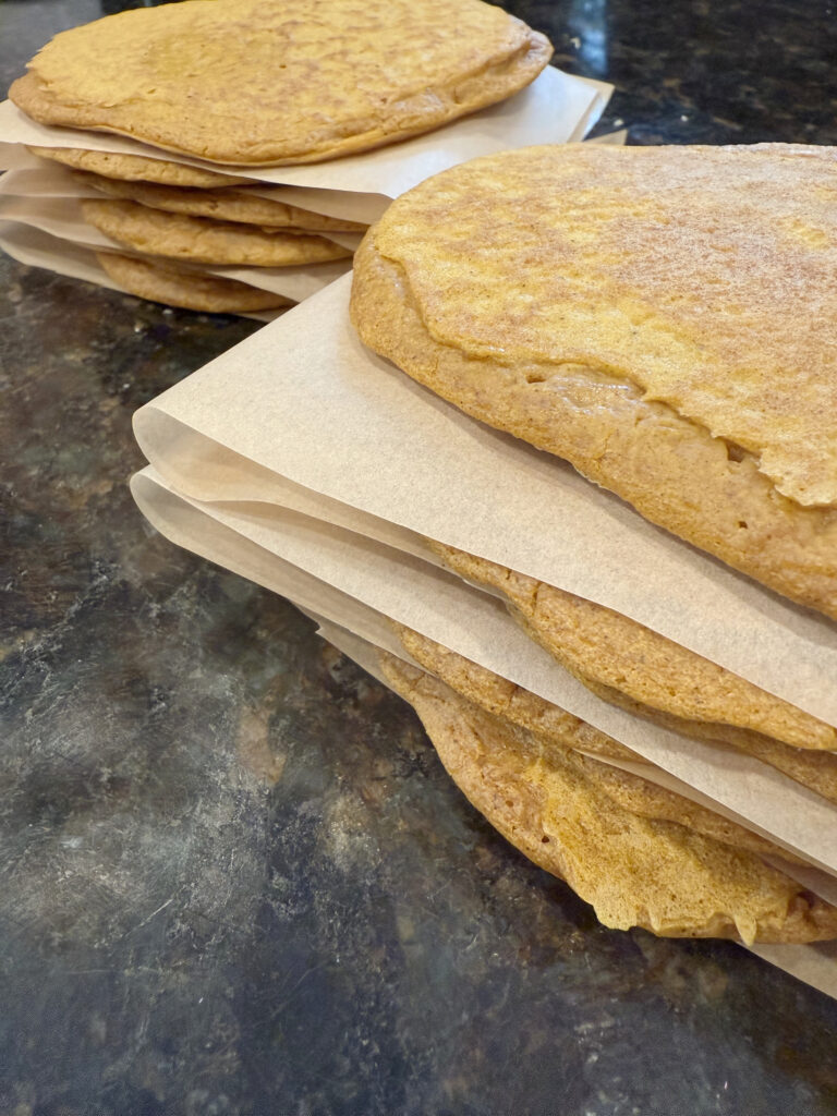 We had a lot of fun experimenting with these new pumpkin pancakes and we think we’ve finally found a winner! This recipe is based on my original Overnight Sourdough Einkorn Pancakes with added ingredients. Although pumpkin pie spice could be used, I like to add the individual spices to control the flavor a bit more. The resulting pancakes are yummy and moist with the perfect pumpkin flavor! A little drizzle of maple syrup will add some sweetness if needed but with no added sugar in this recipe, I like that the subtleness of the spices can be tasted. These pancakes freeze beautifully and heat up in the toaster oven perfectly, so I make a whole batch and save what we don’t eat so the kids can make their own breakfasts on other mornings. Placing parchment paper in between each stack of pancakes makes it super easy to pop out only the number of pancakes that are needed. We still love the original recipe but these pancakes are the favored variety throughout the year.