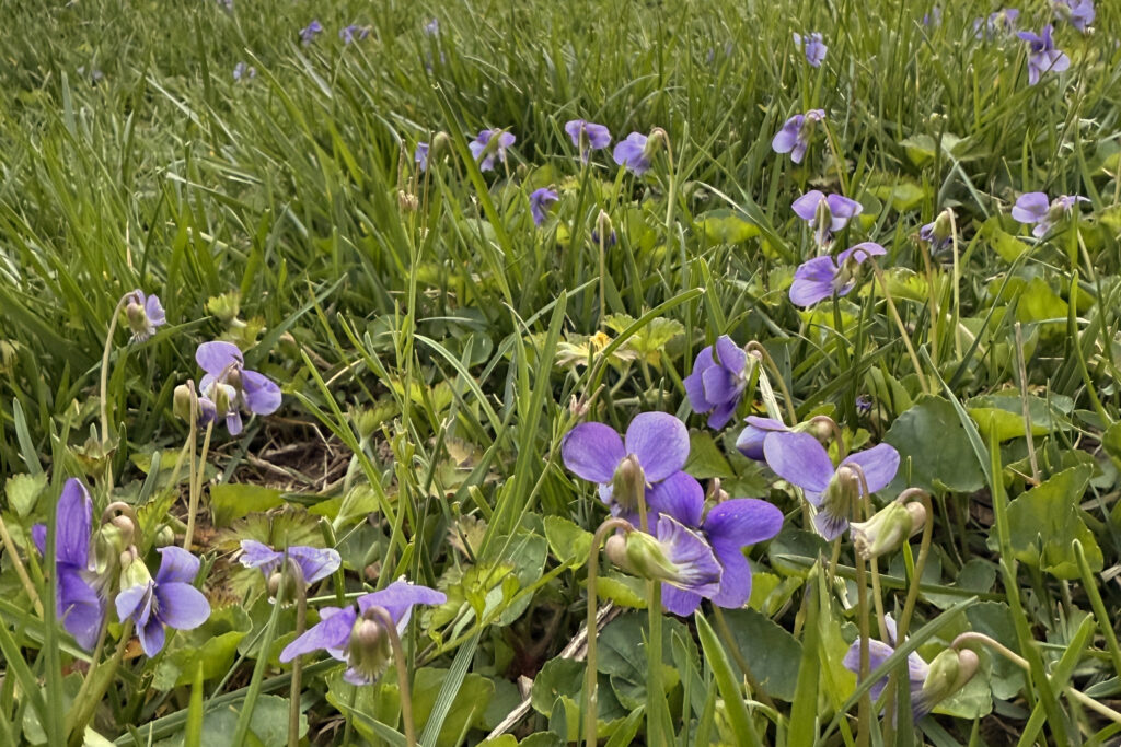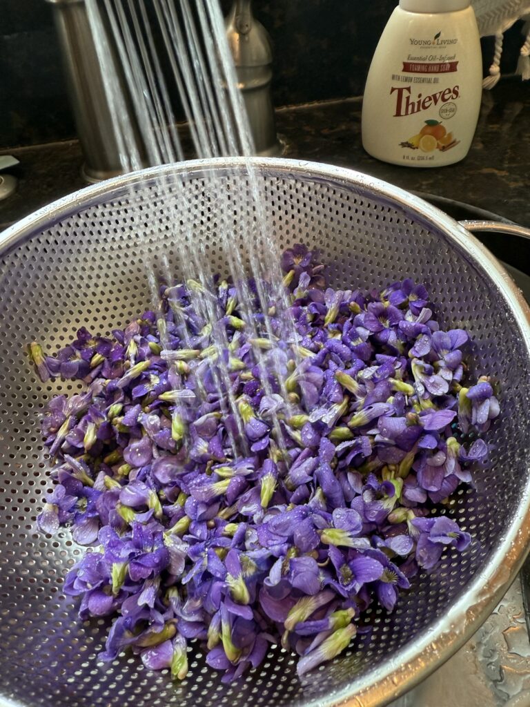 It’s mid-April, so I am beginning to see pretty purple patches of violet (viola spp.) make their debut all across my front field, lawns, and garden beds. Considered a weed by many, the common violet’s flowers and leaves are herbal powerhouses that can be used in several ways to support the body. Although the ones that grow in my area are usually purple, I find the occasional yellow or white blooms also. They have five sepals and five slightly irregular petals that droop to the ground, with the bottom petal being slightly larger than the others. They look a lot like pansies and are a perennial plant, so they come back every year as long as they aren’t over-foraged. The leaves are 1-3 inches, heart-shaped, and smooth.